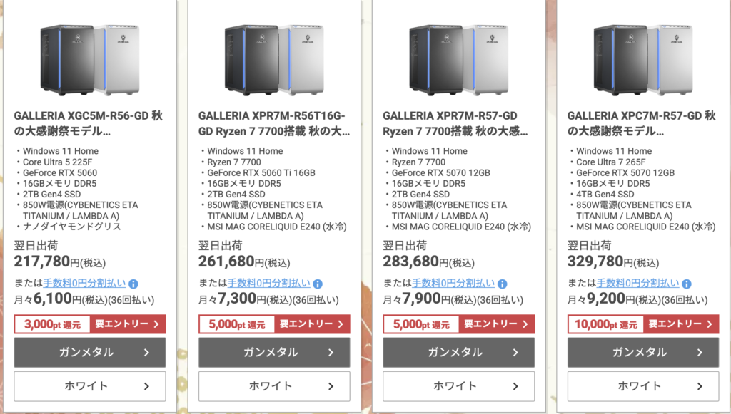 ゲーミングPCブランド「GALLERIA(ガレリア)」からは、最新GPUを搭載した限定モデルが多数ラインアップ。